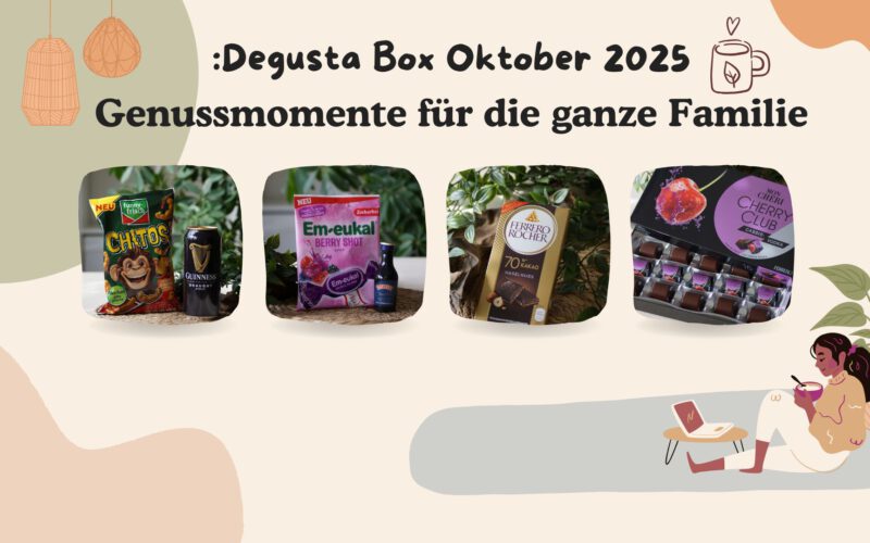 Der Oktober bringt nicht nur bunte Blätter und kuschelige Abende, sondern auch die neue :Degusta Box ins Haus! Unter dem Motto „Genussmomente“ warten diesmal 15 Überraschungen darauf entdeckt zu werden. Ob zum Teilen mit der ganzen Familie, zum Snacken zwischendurch oder für gemütliche Stunden – hier ist wirklich für jeden etwas dabei.